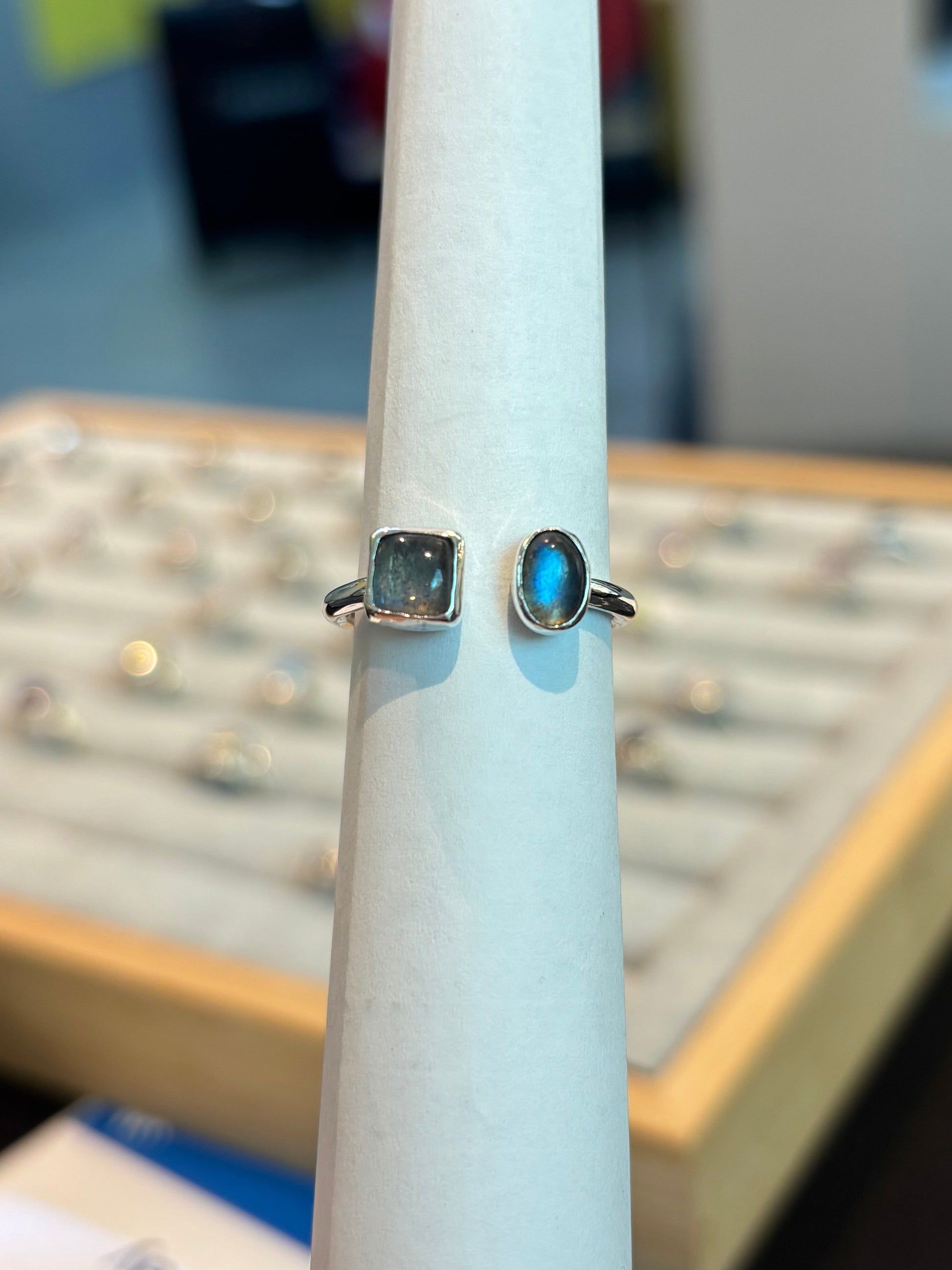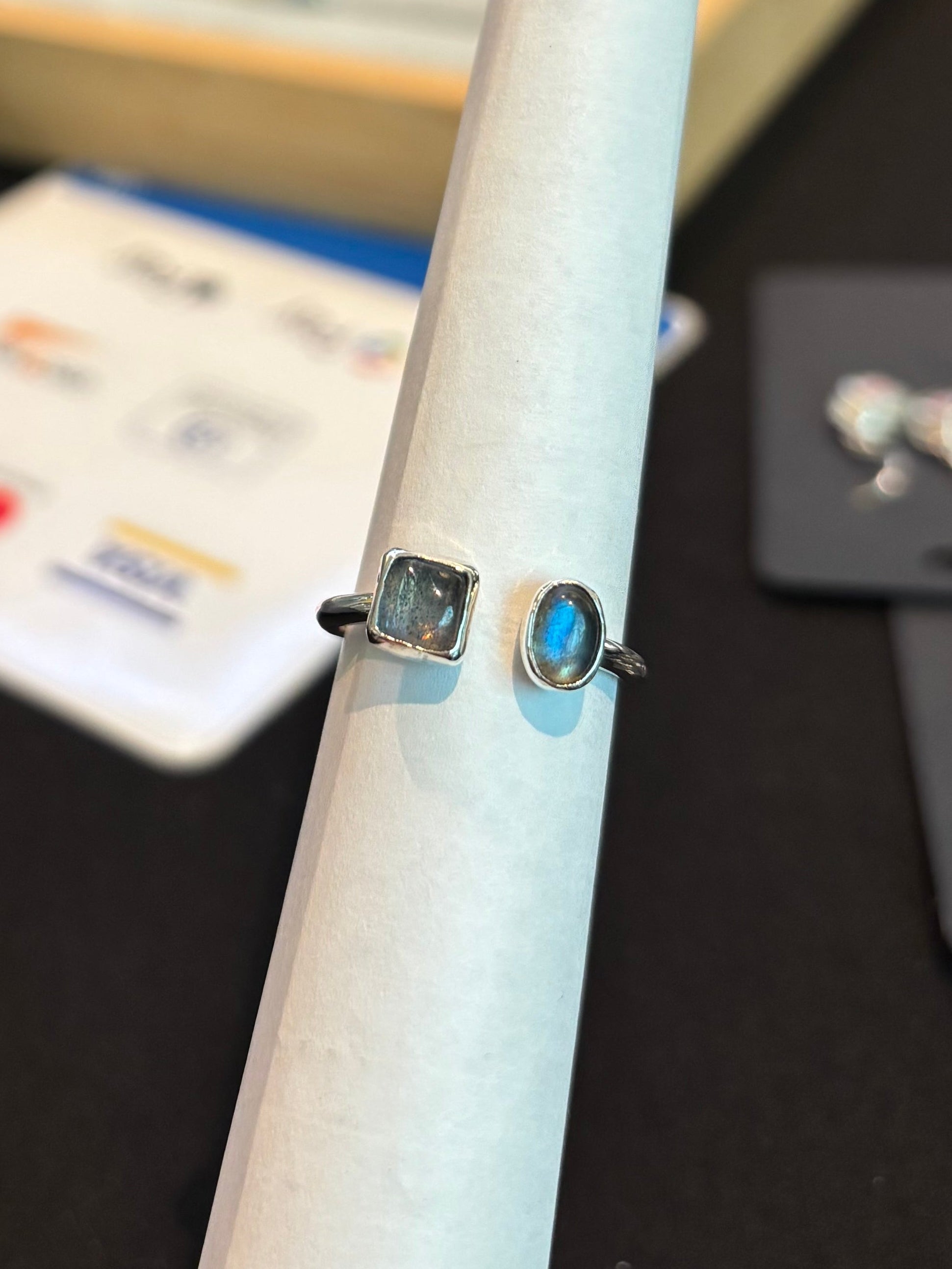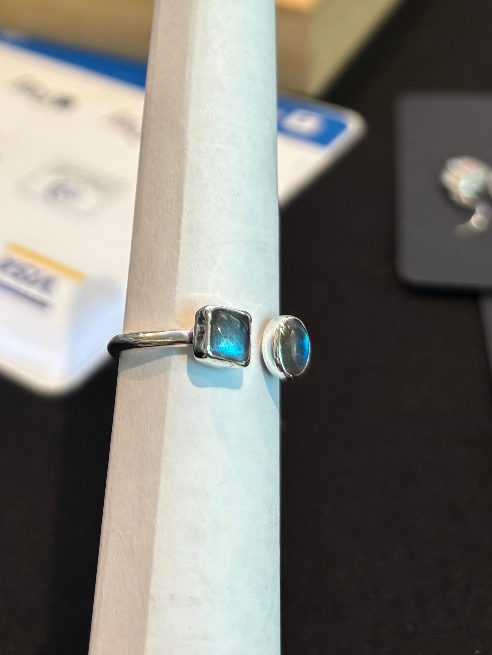 - las piedras son Labradoritas; ovalada 6x4mm y cuadrada 6mm